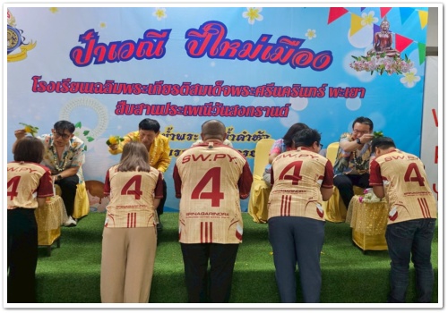 เมื่อวันที่ 13 เมษายน 2568 นายสัญญา ทะกัน ผู้อำนวยการโรงเรียนเฉลิมพระเกียรติสมเด็จพระศรีนครินทร์ พะเยา ในพระราชูปถัมภ์สมเด็จพระเทพรัตนราชสุดาฯ สยามบรมราชกุมารี พร้อมด้วยคณะผู้บริหาร คณะครู และบุคลากรทางการศึกษา ร่วมจัดพิธีสรงน้ำพระพุทธรูป และพิธีรดน้ำดำหัวขอพรครูอาวุโส เนื่องในเทศกาลสงกรานต์ ประจำปี 2568 (ปิ๊กหอ 2568) เพื่อสืบสานขนบธรรมเนียมประเพณีอันดีงามของไทย และแสดงความเคารพกตัญญูกตเวทีต่อครูอาวุโส ผู้เป็นแบบอย่างที่ดีแก่บุคลากรและนักเรียน